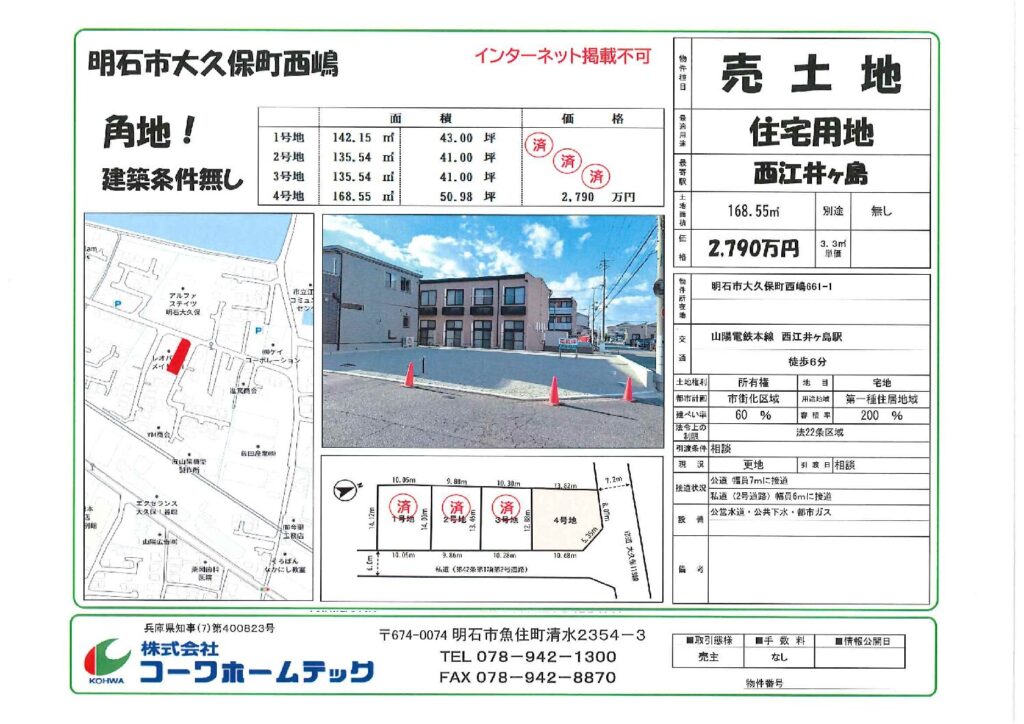 明石市大久保町西嶋 4号地 明るい角地です!